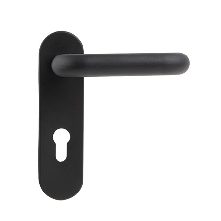Ручки на планке под евроцилиндр устанавливаются совместно с противопожарными замками с межосевым расстоянием 72 мм: