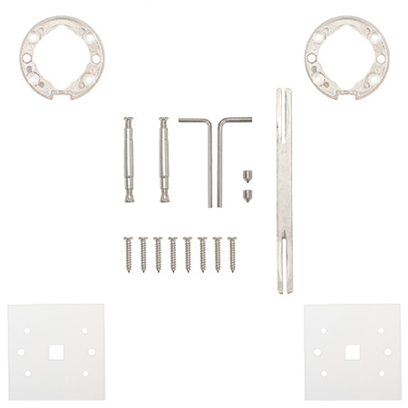 Стяжки M4 12(33)30 - 2 шт, саморезы SТ3*20 - 8 шт, винт фиксации - 4 шт, ключ шестигранный - 2 шт. |