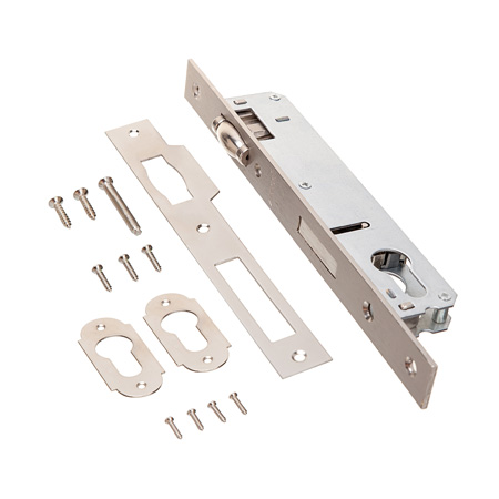 Замки с роликовым фиксатором комплектуются ответной планкой и декоративными накладками на цилиндр.